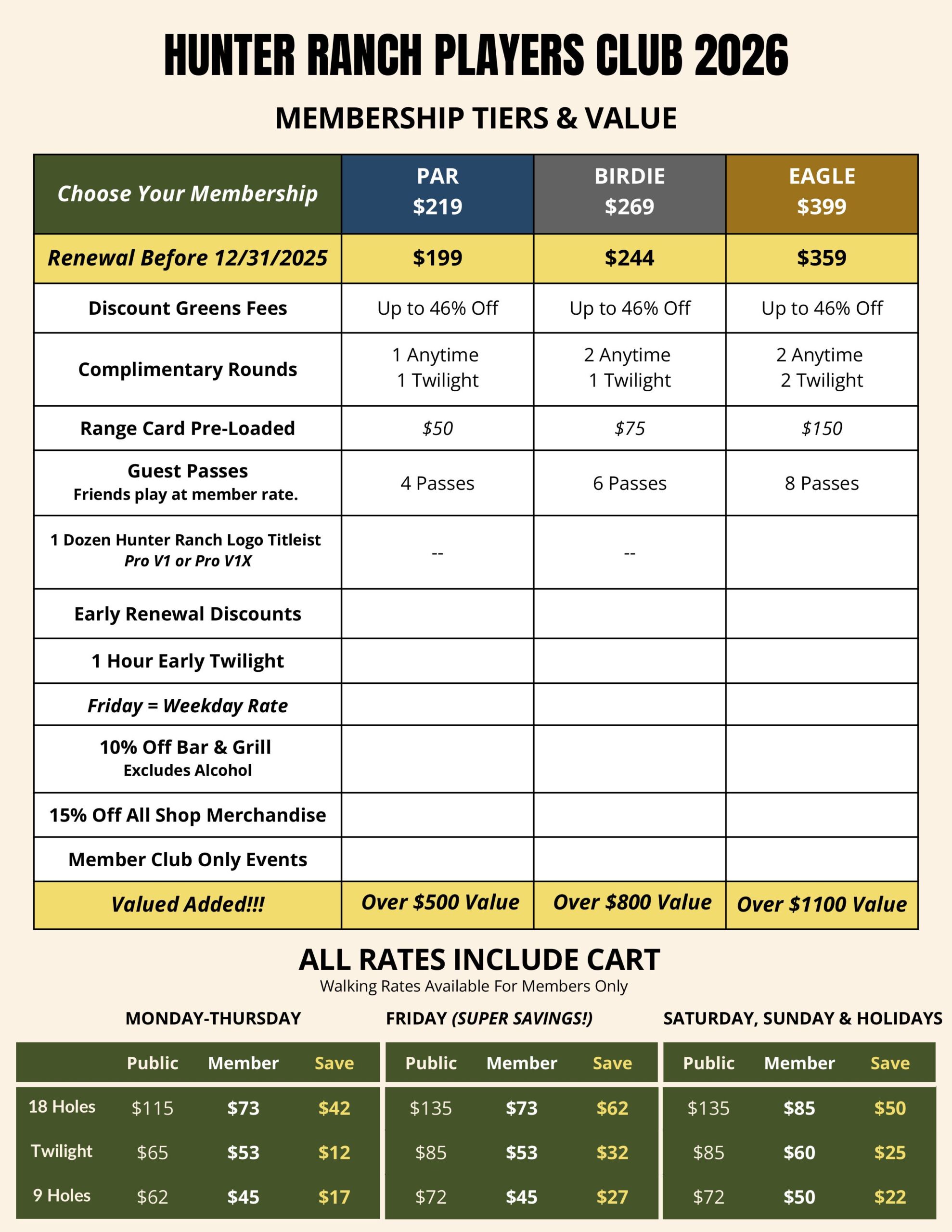 Hunter Ranch Players Club 2026 (Existing Members Renewal before 12/31/25)