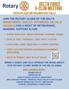 Delta Force Rotary Meeting, May 14, 2026 (All 5 Rotary Clubs of the Delta!)