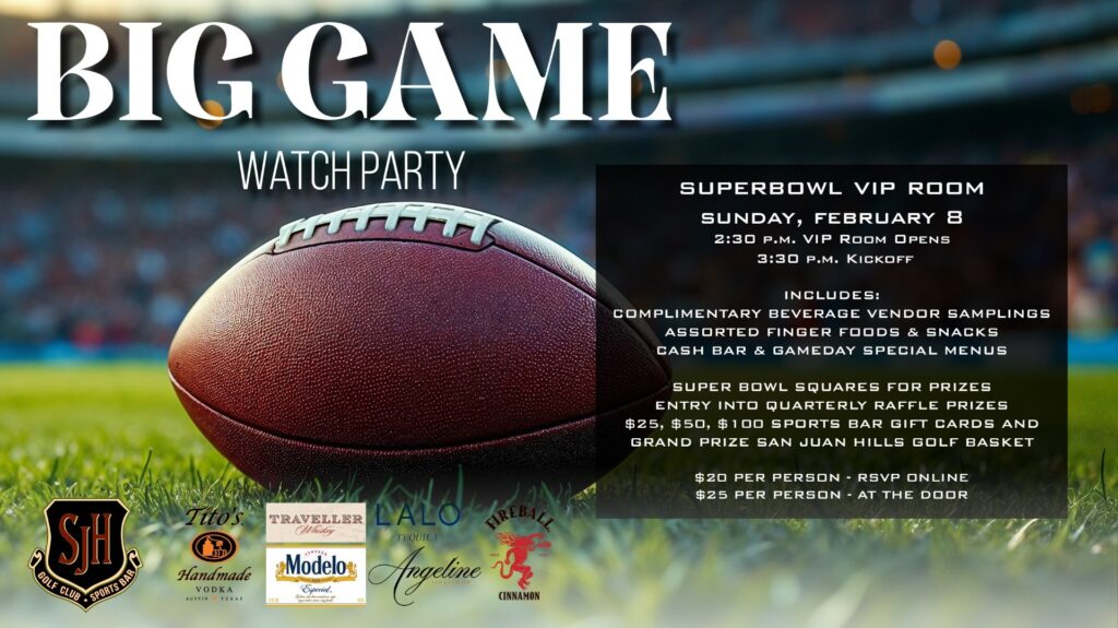 Admission includes Entry into Quarterly Raffle Prize Drawings, including: $25, $50, $100 Sports Bar Gift Cards, and Grand Prize San Juan Hills Golf Basket