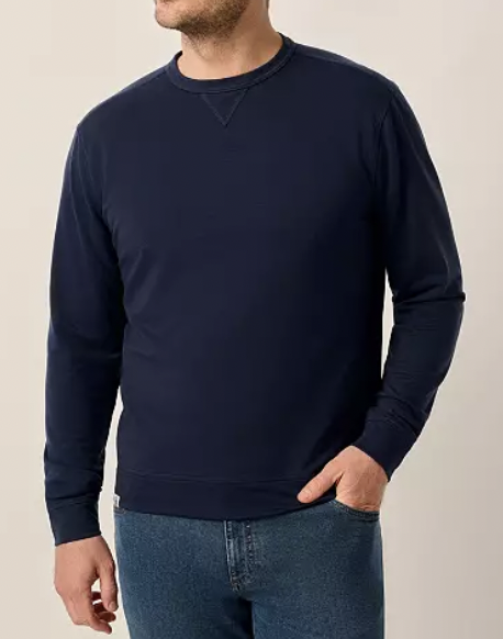Cozy, comfortable 81% dri-release polyester/11% lyocell/8% spandex. Long sleeves, crew neck with V detail, chain-stitching detail, band cuffs and hem.