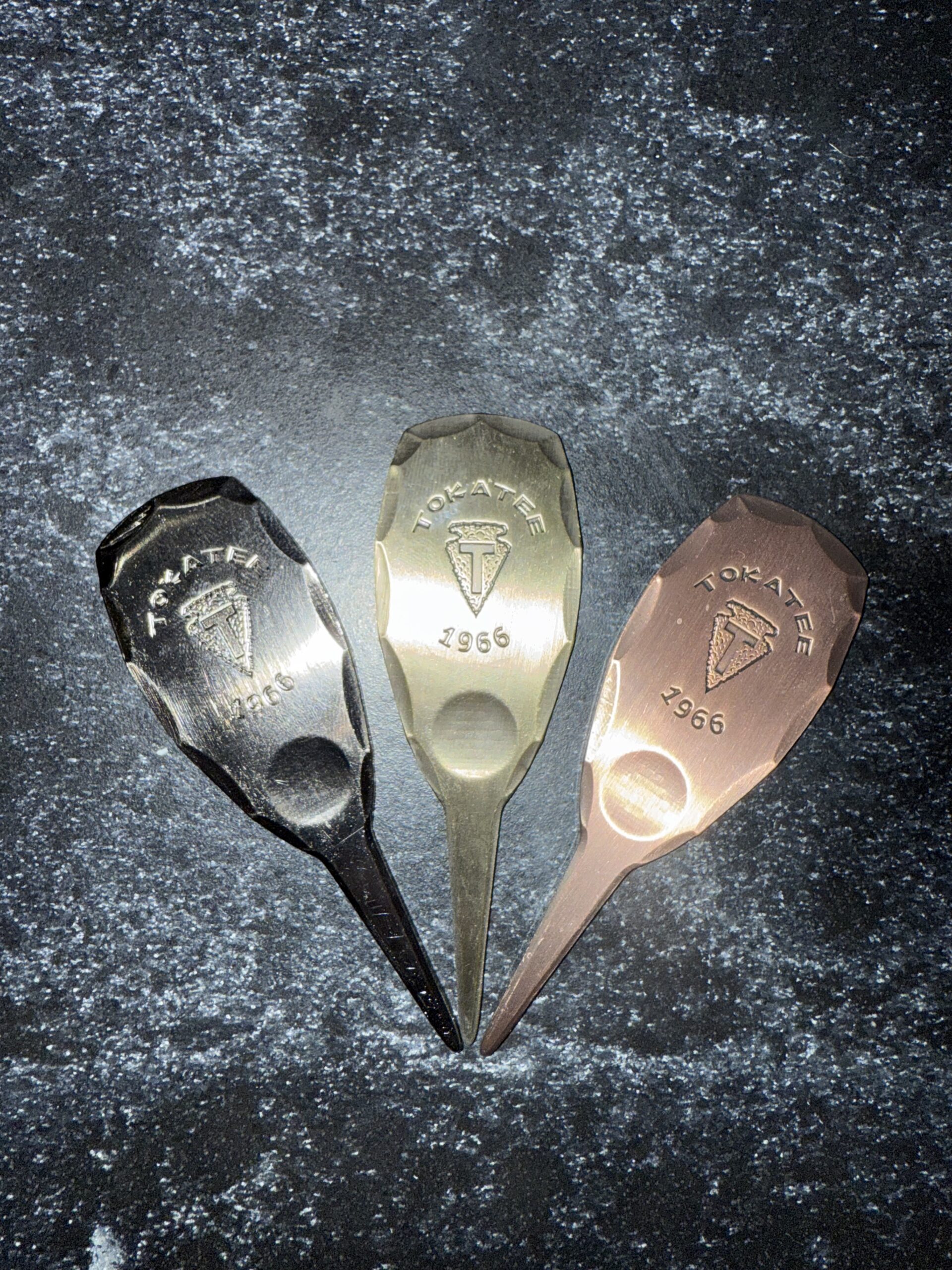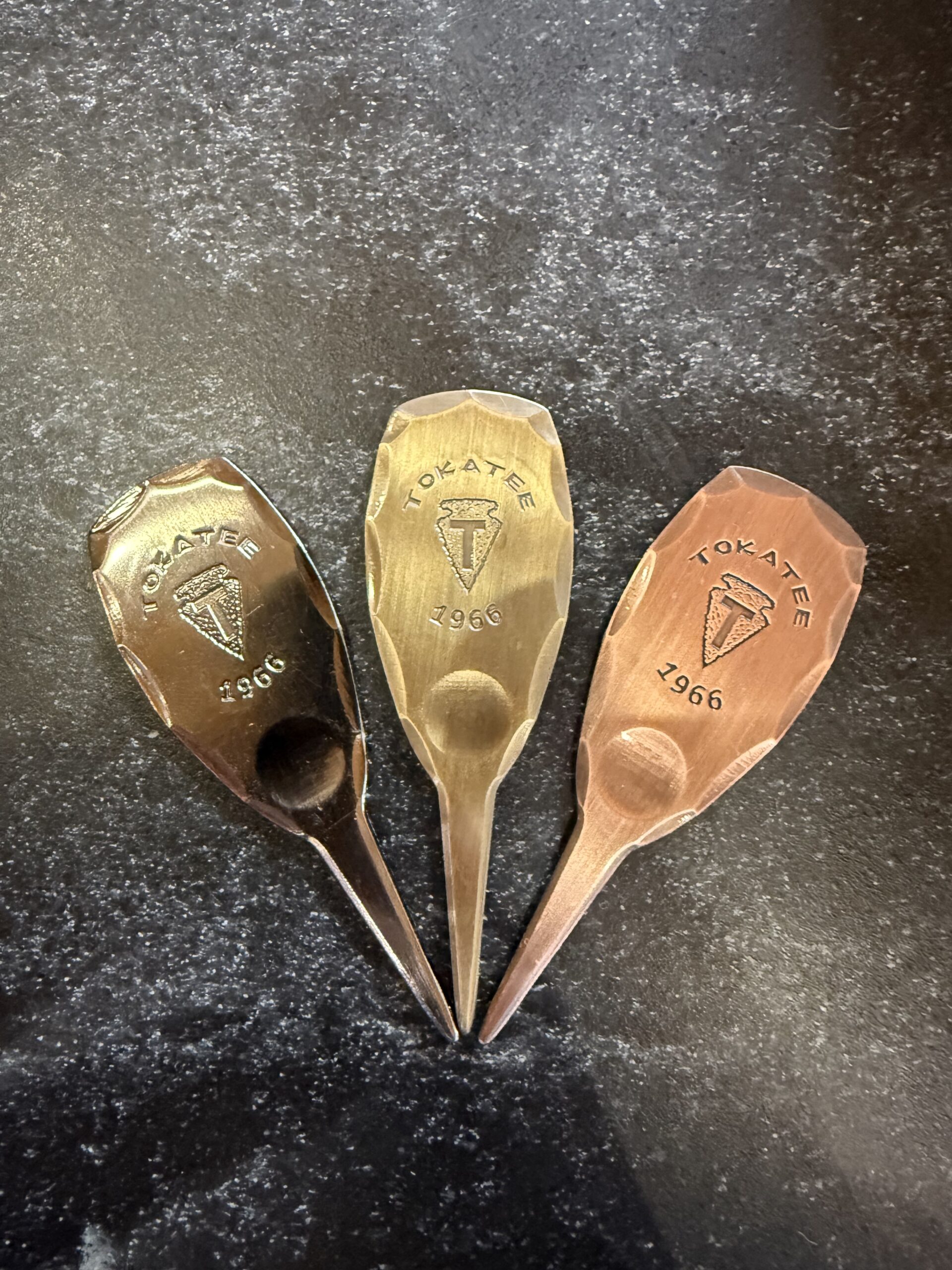 Chiseled metal divot tool with Tokatee engraved. About 2.5″ big