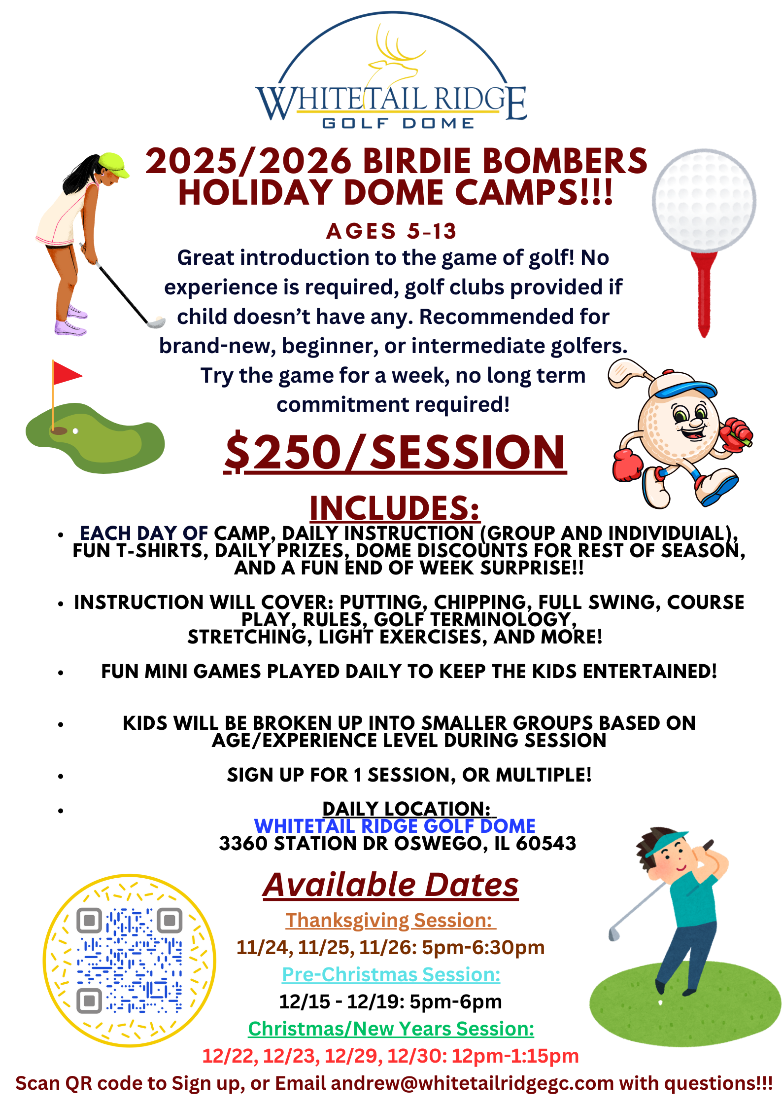 Any questions about the Birdie Bombers camp or any other junior programs, contact [email protected]