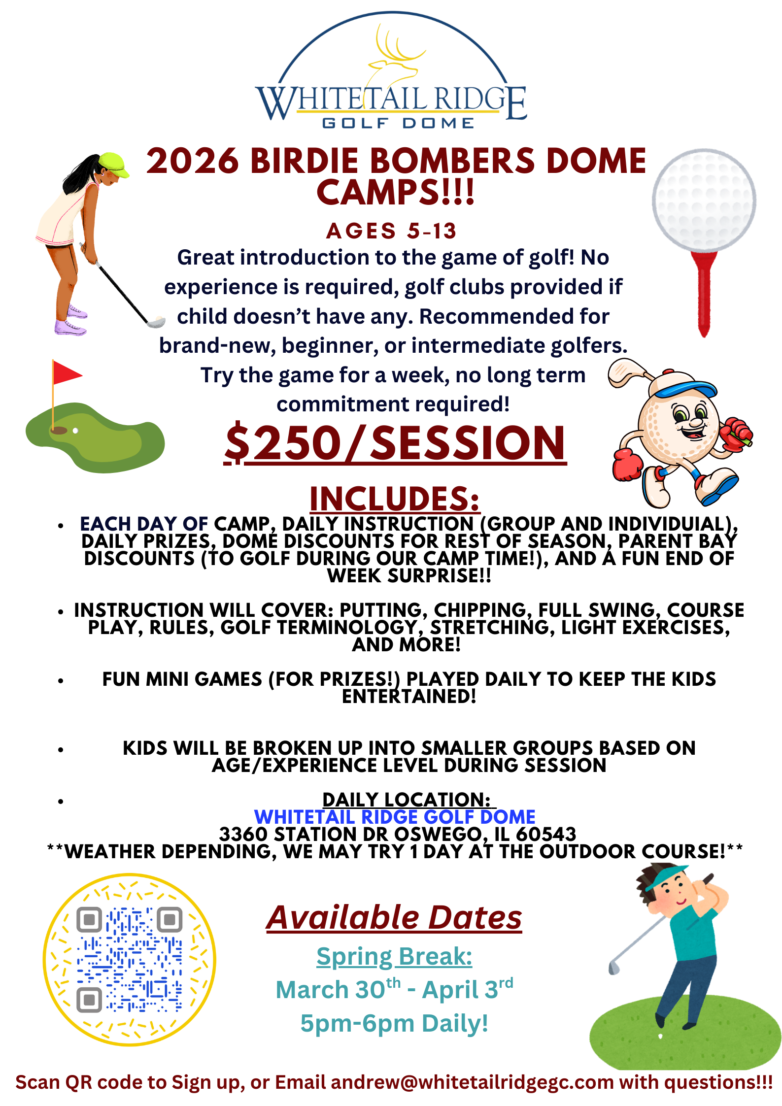 Any questions about the Birdie Bombers camp or any other junior programs, contact [email protected]